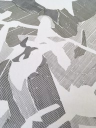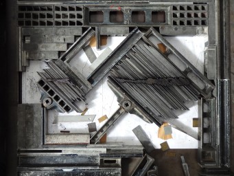 Well, I think that learning letterpress at an Art school for adults was the main reason why I use it in a more abstract form. The first year at the academy was kind of horrible. Looking at everybody working on their personal project (the RHoK academy in Brussels might be the best place to do etching and lithography in Belgium, maybe in Europe) and me, having no goal except the fact that I wanted to learn that technique, was not cool at all. I just knew that putting letters on the press’s bed to write a text wasn’t something interesting (in that case), I was in an Art school, I was not there to redo a newspaper page. So, the teacher gave me some exercises to try and pull something out of me. And I still remember that moment, at the end of the year, when I opened this tray full of brass rules, my eyes blinked and somewhere between my ears, a little light switched “on” and I thought “Ok, I can pull something out of it”.